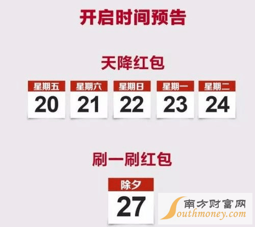 1月27日,除夕夜18:00到23:45,不停點擊屏幕,刷刷刷,就有機會領取現(xiàn)金和卡券禮包。和去年的“咻一咻”紅包類似,希望紅包能砸中你。