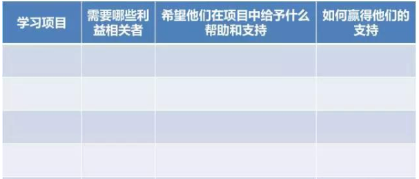 很多培訓管理者缺乏在這方面的投入,在學習項目發(fā)布通知時,才展示給這些利益相關者,這是非常危險的做法,很容易陷入“孤島”。所以現(xiàn)在就應該去贏得利益相關者的支持,通常可采取的做法是拜訪、深挖痛點、展示方案、呈現(xiàn)利益、私交等。